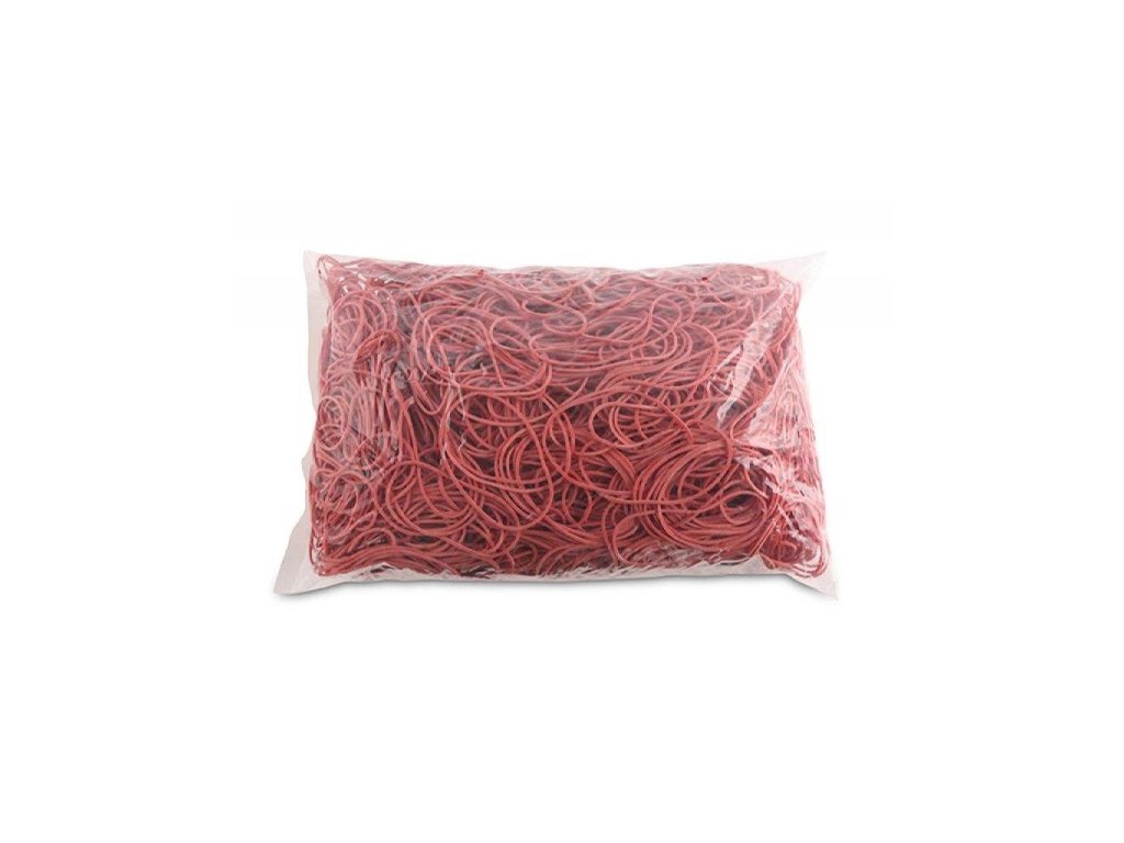 Odolné a pružné gumičky vyrobené z materiálu s prímesou gumy (60 %). Rozmery (hrúbka × šírka) 1,5 × 1,5 mm. Priemer 60 mm. Farba červená.