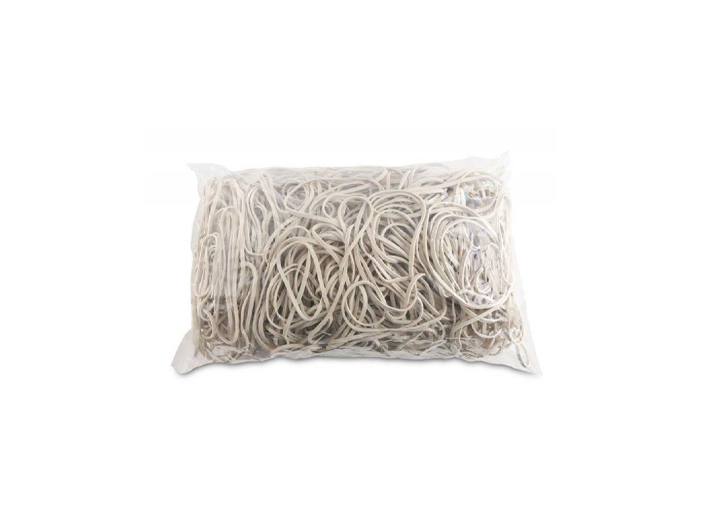 Odolné a pružné gumičky vyrobené z materiálu s prímesou gumy (60 %). Rozmery (hrúbka × šírka) 1,5 × 3 mm. Priemer 80 mm. Farba biela.