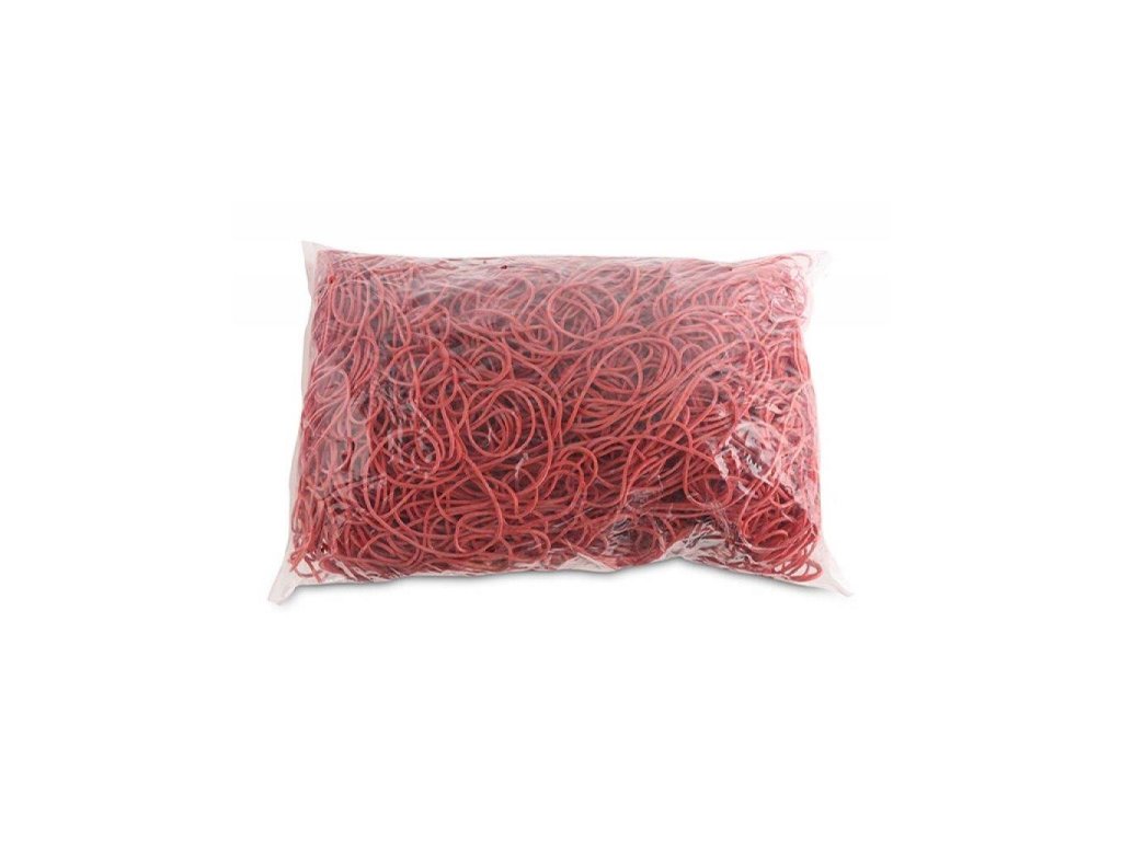 Odolné a pružné gumičky vyrobené z materiálu s prímesou gumy (60 %). Rozmery (hrúbka × šírka) 1,5 × 1,5 mm. Priemer 80 mm. Farba červená.
