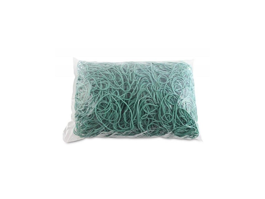 Odolné a pružné gumičky vyrobené z materiálu s prímesou gumy (60 %). Rozmery (hrúbka × šírka) 1,5 × 1,5 mm. Priemer 80 mm. Farba zelená.