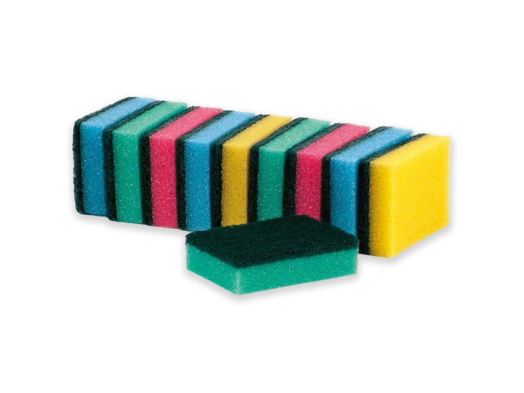 Hubka na umývanie riadu s drôtenkou. V balení 10 ks.