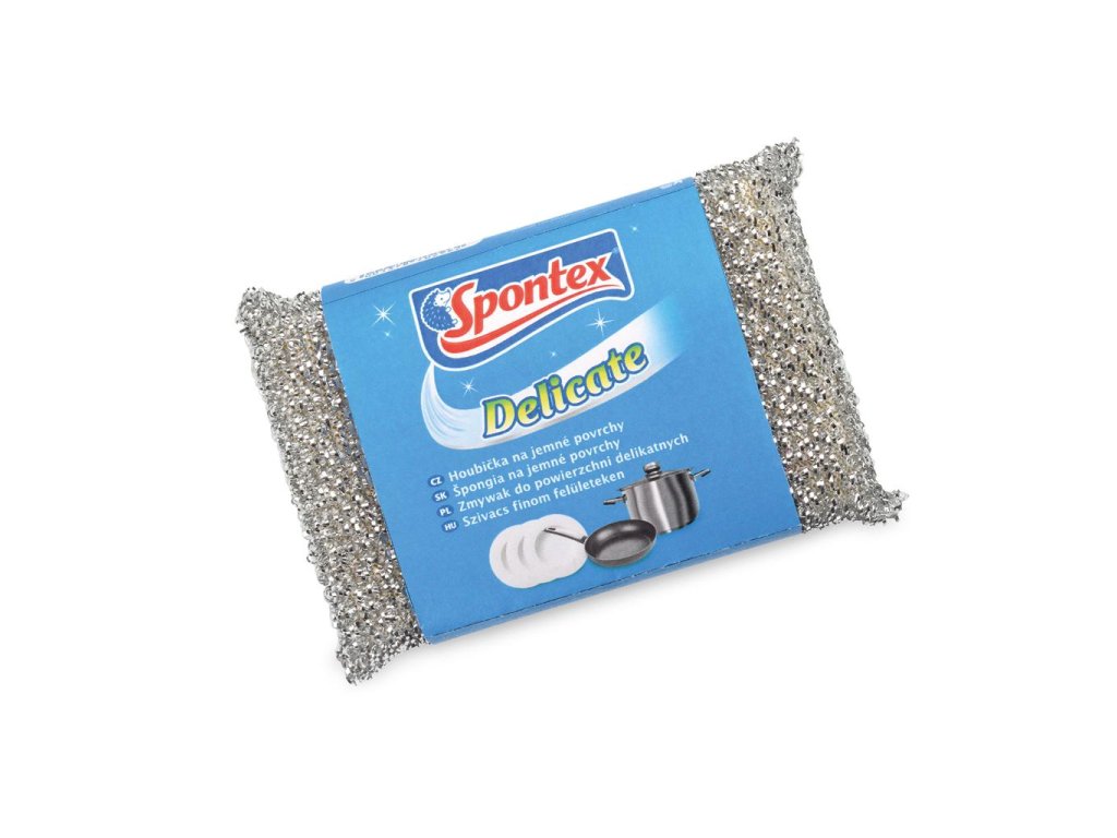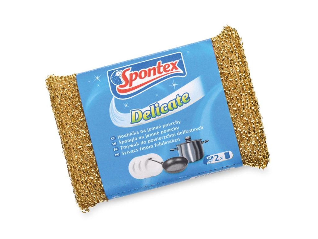 Univerzálna čistiaca hubka pre jemné povrchy. Dokonale čistí bez škrabancov, perfektná na panvice, sklo, porcelán a nerezovú oceľ. Mix farieb zlatá a strieborná.
