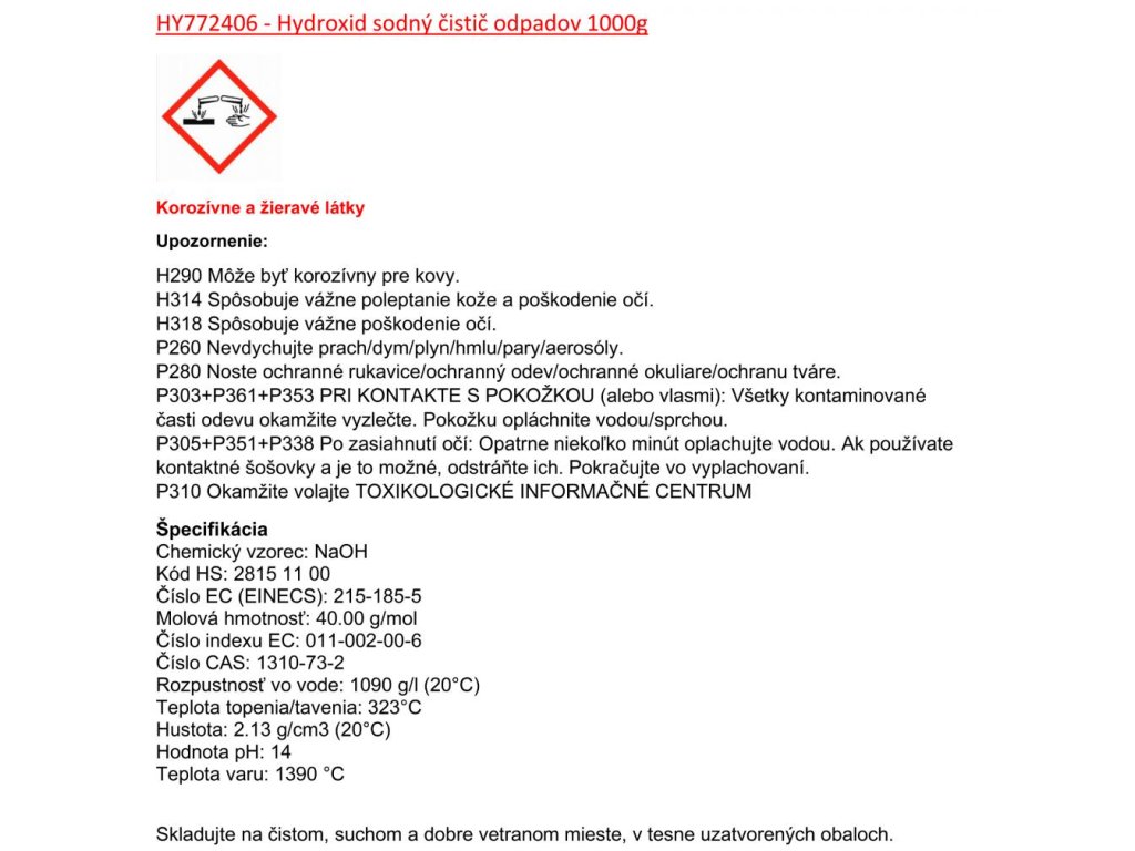 - Ako odmasťovač, čistí odpady v rozpustenom stave, rozpúšťa organické usadeniny marginalizovaných sifónov a výleviek