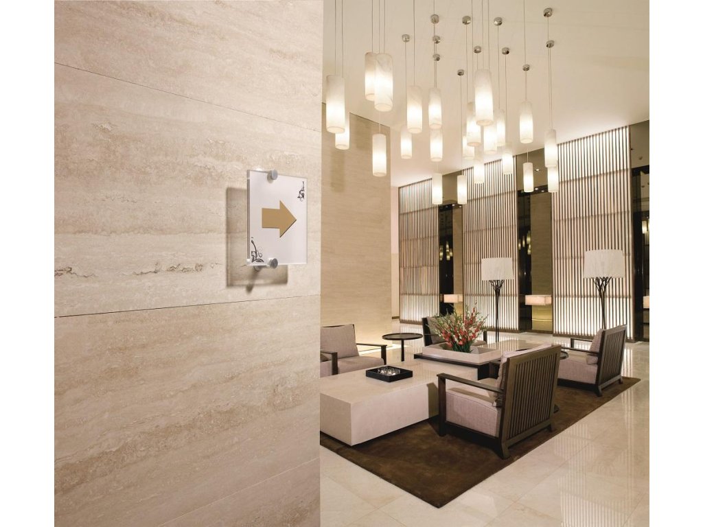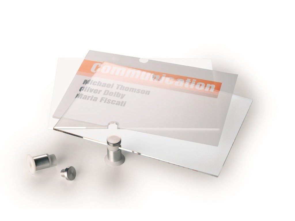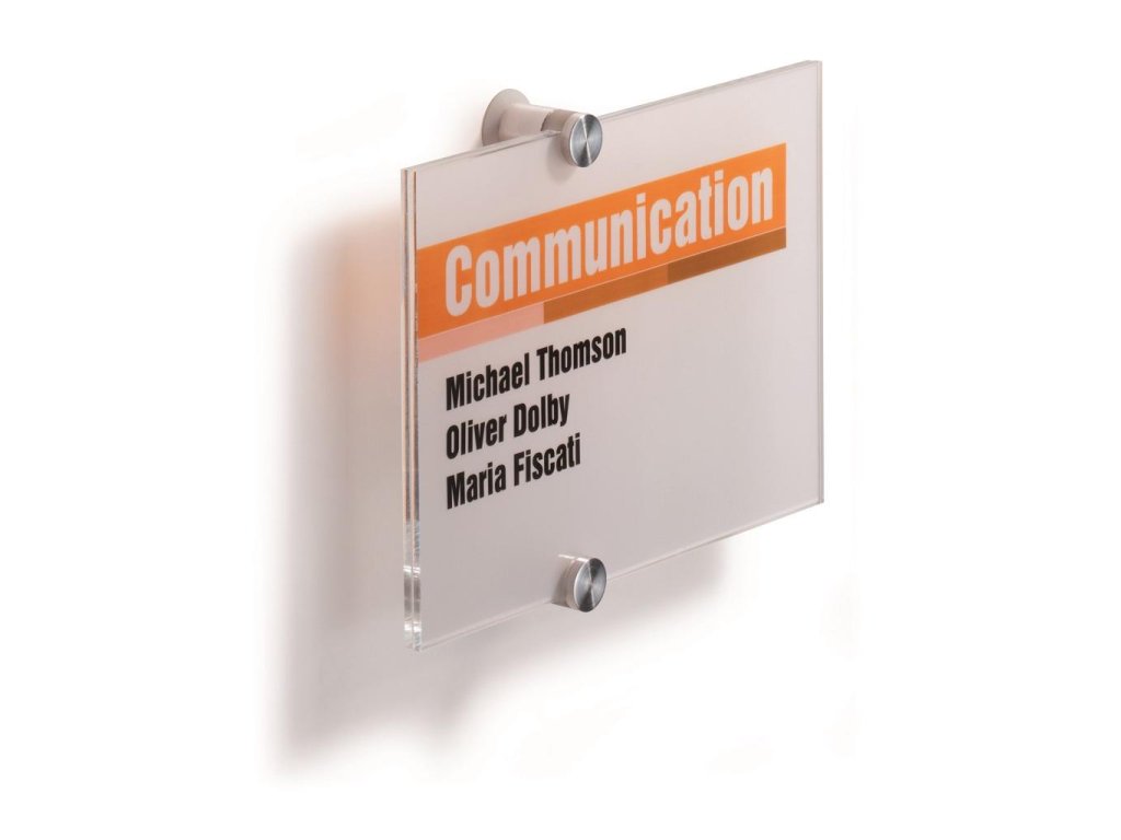 Tabuľka na dvere z novej rady v elegantnom, atraktívnom, a zároveň jednoduchom dizajne. Dodávaná s 2 polopriehľadnými vnútornými listami, vhodnými na farebnú alebo čiernu potlač. Listy sa vložia medzi akrylové panely tabuľky a tabuľka sa prichytí k stene alebo dverám 2 veľkými hliníkovými skrutkami. Ľahká montáž, názorný návod je priložený.