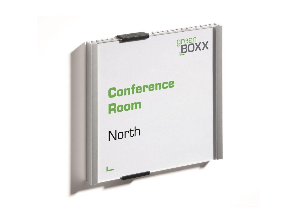 Informačná tabuľka na dvere. Štylizovaná tabuľka vo vrúbkovanej úprave, spodná časť z vysoko kvalitného hliníka, fixujúce spojky v čiernej farbe. K podkladu môže byť zadnou časťou priskrutkovaná alebo nalepená. Text je chránený neoslňujúcim akrylátovým krytom, ktorý pridržiavajú dve fixujúce spojky. Súčasťou balenia je montážna sada s názorným návodom a čistým listom papiera vo veľkosti tabuľky.