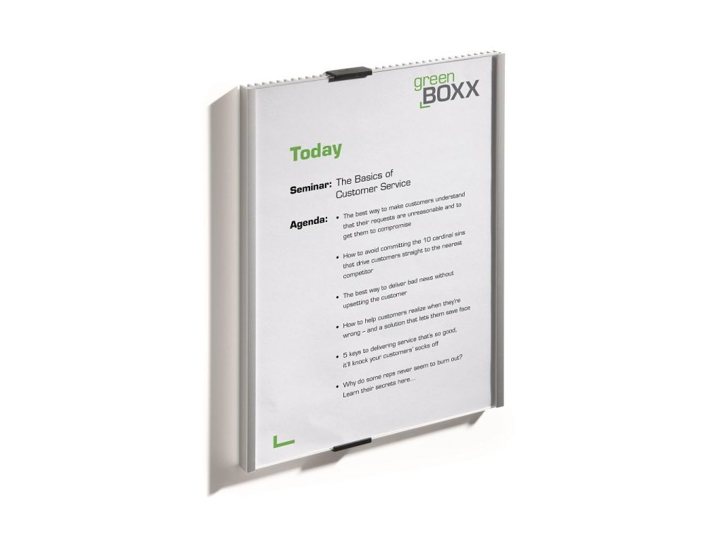 Informačná tabuľka na dvere. Štylizovaná tabuľka vo vrúbkovanej úprave, spodná časť z vysoko kvalitného hliníka, fixujúce spojky v čiernej farbe. K podkladu môže byť zadnou časťou priskrutkovaná alebo nalepená. Text je chránený neoslňujúcim akrylátovým krytom, ktorý pridržiavajú dve fixujúce spojky. Súčasťou balenia je montážna sada s názorným návodom a čistým listom papiera vo veľkosti tabuľky.