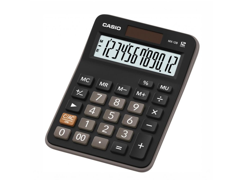 Stolová kalkulačka s 12-miestnym LCD displejom a plastovými tlačidlami. Opravné tlačidlo a tlačidlo na výpočet marže.