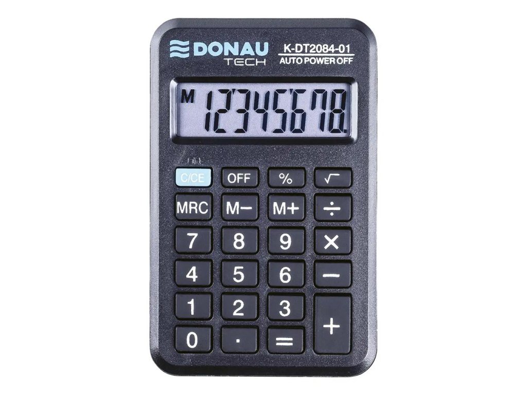 Kalkulačka s 8-miestnym displejom a gumenými tlačidlami. Farba čierna. Záruka 5 rokov.
