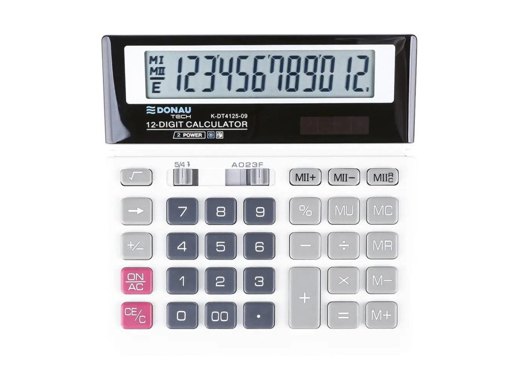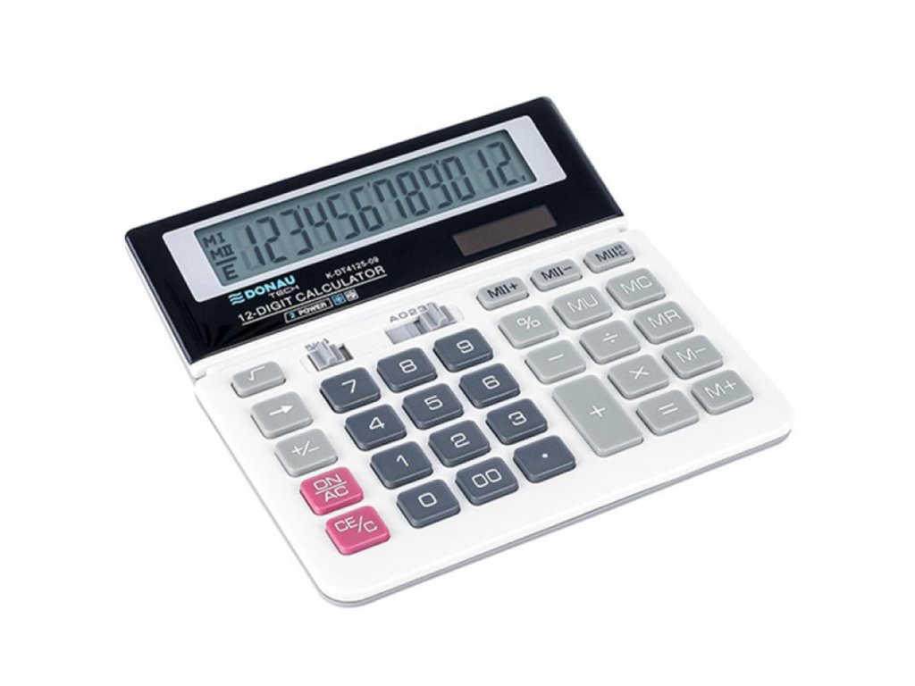 Kalkulačka s 12-miestnym displejom a plastovými tlačidlami. Farba biela. Záruka 5 rokov.