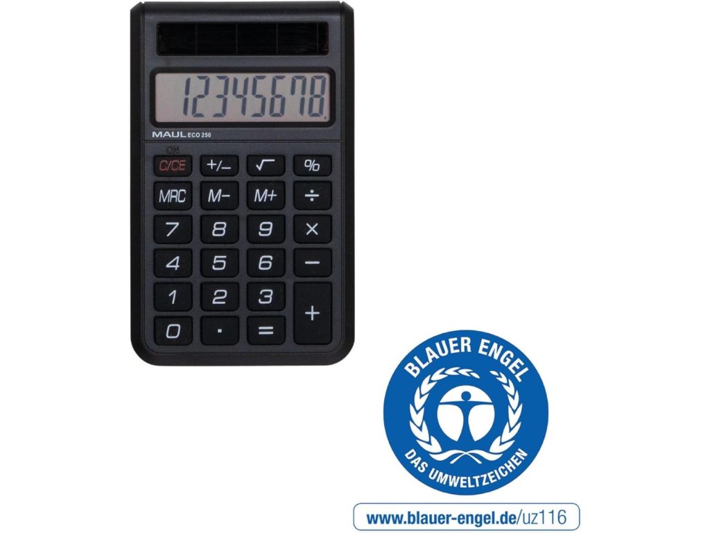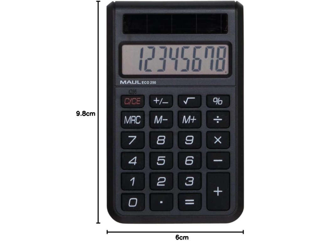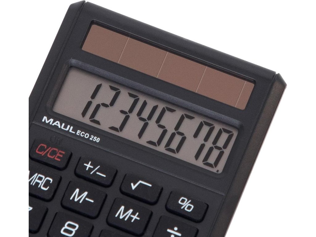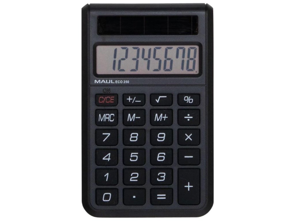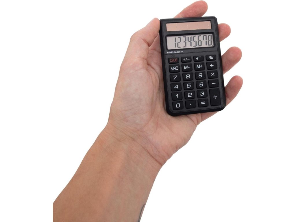 Vrecková kalkulačka s 8‑miestnym LCD displejom, plastovými tlačidlami a štandardnými funkciami.