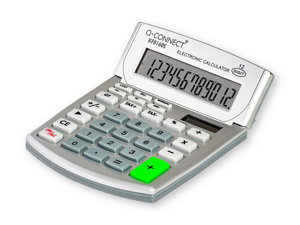 Stolová kalkulačka s veľkým displejom, štandardnými matematickými funkciami a 12‑miestnym LCD displejom.