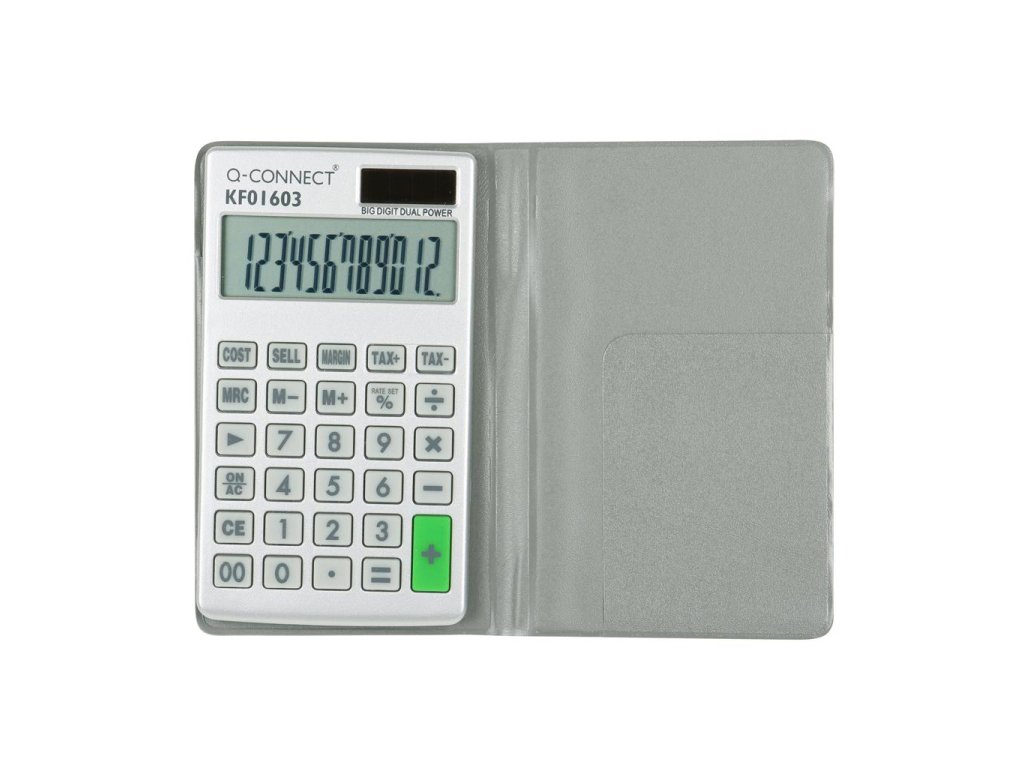 Vrecková kalkulačka s ochranným puzdrom, 10‑miestnym LCD displejom, väčšími tlačidlami a štandardnými matematickými funkciami. Duálne napájanie (solárne + batéria). Rozmery 68 × 112 × 6 mm.