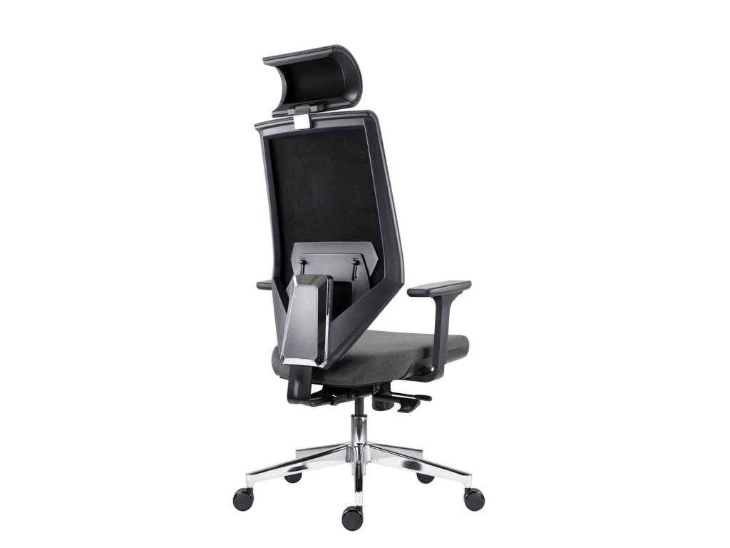 Kancelárska stolička čalúnená s uhlovo nastaviteľným podhlavníkom.