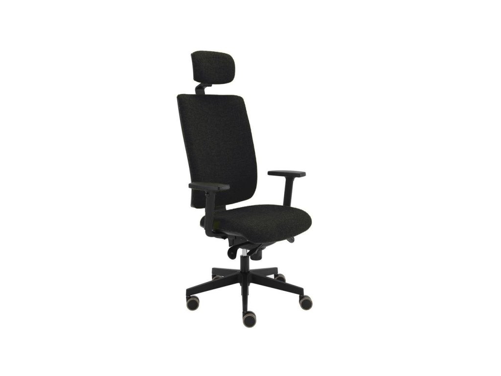 Kancelárska stolička štýlového dizajnu s výškovo nastaviteľným čalúneným operadlom.