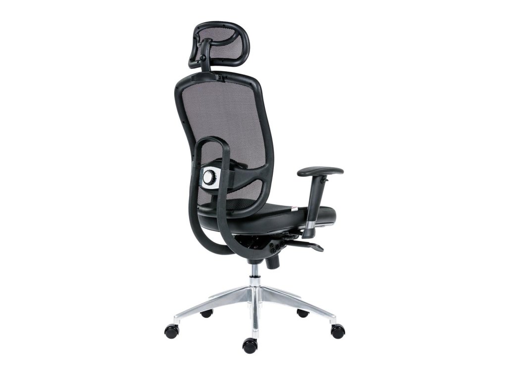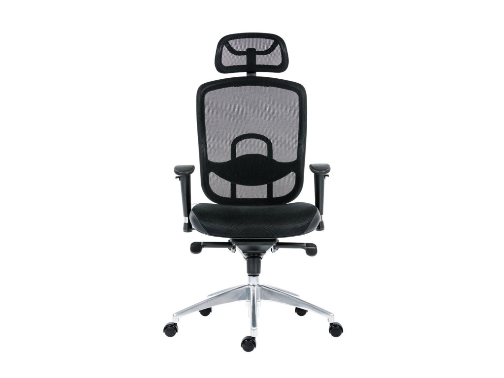 Obľúbené prevedenie kancelárskej stoličky so sieťovinou na operadle a opierke hlavy.