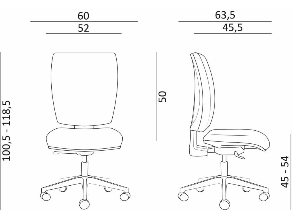 • kancelárska stolička s čalúneným sedákom a operadlom