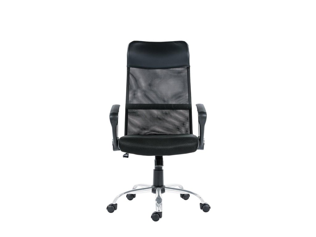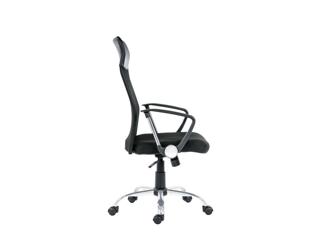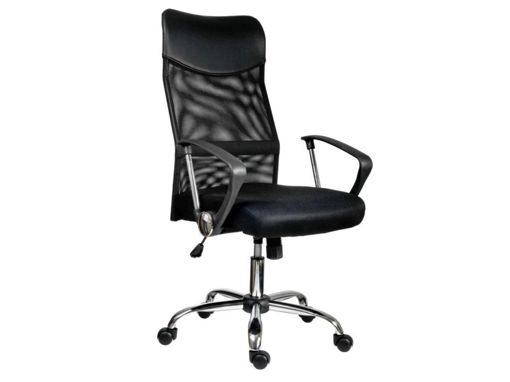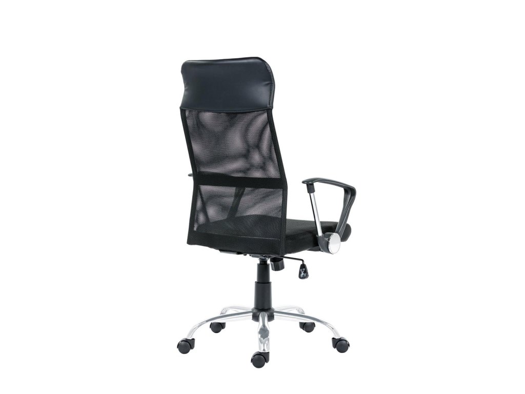 Kancelárska otočná stolička s operadlom s čiernou sieťovinou a hojdacím mechanizmom.