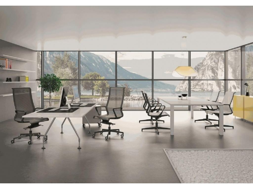 Moderne konštruované kreslo stolička so sieťovinou na sedadla a operadla.