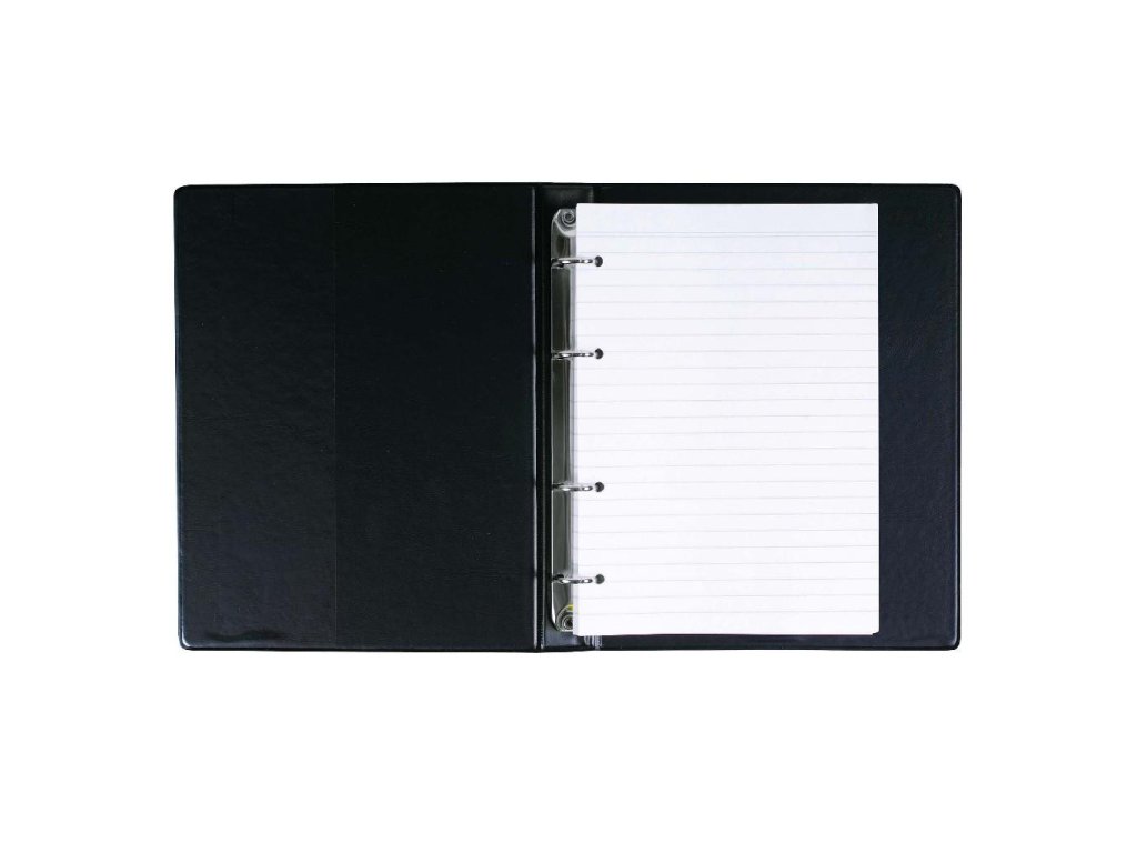 Karisblok so 4-krúžkovým mechanizmom, dodávaný vrátane 100 listov s linajkami. Materiál PVC. Formát A5. Rozmer : 183 x 231 x 30 mm. Farba čierna. Väčšie balenie 15 ks.