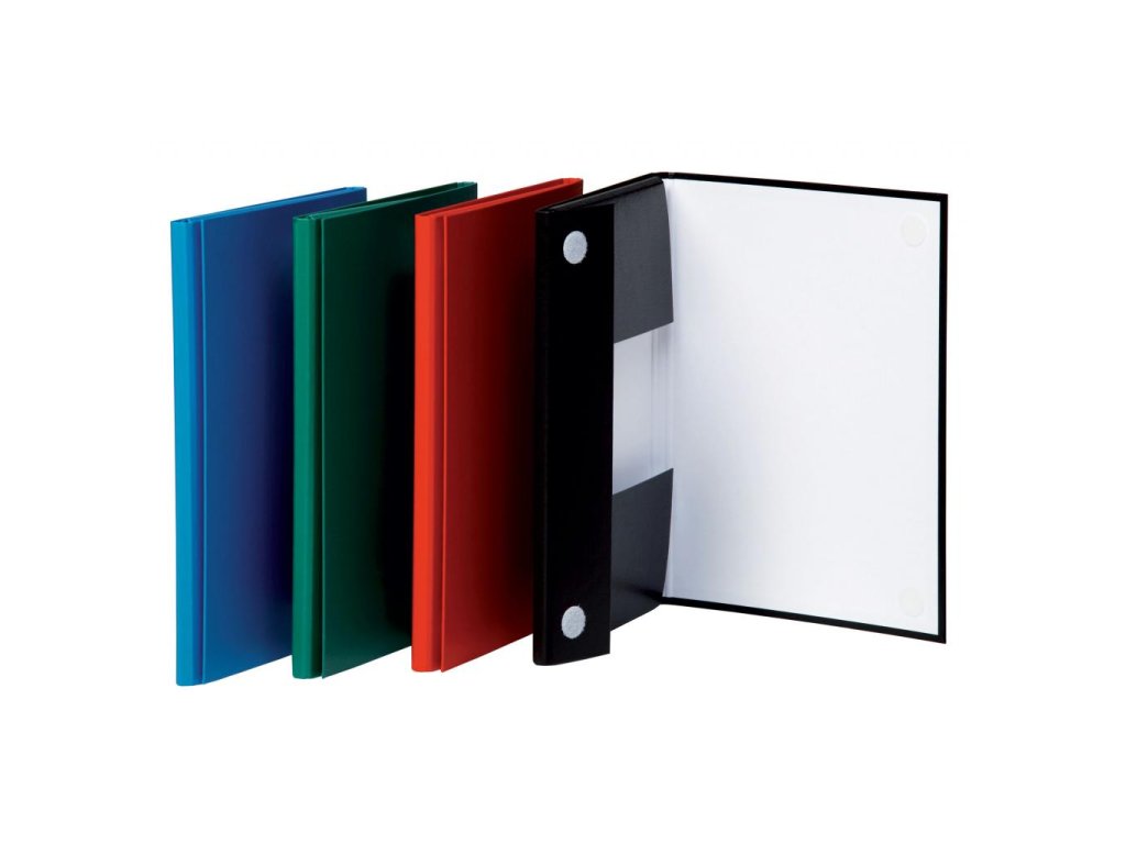 Trojchlopňový box na dokumenty z tvrdeného kartónu. Vonkajšia strana potiahnutá PP fóliou hrúbky 100 um, vnútro biela dyha gramáže 100 g. Uzatvárateľný krúžkami na suchý zip. Kartón hrúbky 1,8 mm. Kapacita 120 listov. Rozmery (š×v×h) 235×315×15 mm.Väčšie balenie 10 ks.