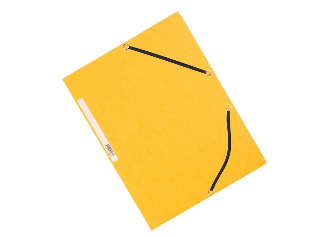 Obal s tromi chlopňami a gumičkou z kvalitného hladkého kartónu gramáže 375 g. Chrbtový štítok, kapacita 200 listov. Farba žltá.
