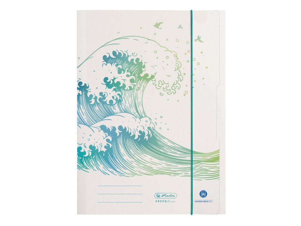 Trojchlopňový obal A4 z recyklovanej lepenky so zatváraním na gumičku dizajnovej rady GREENline. Motív Vlna.