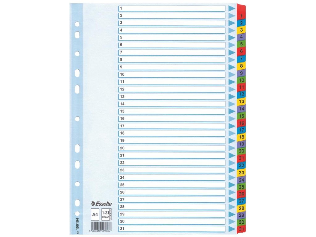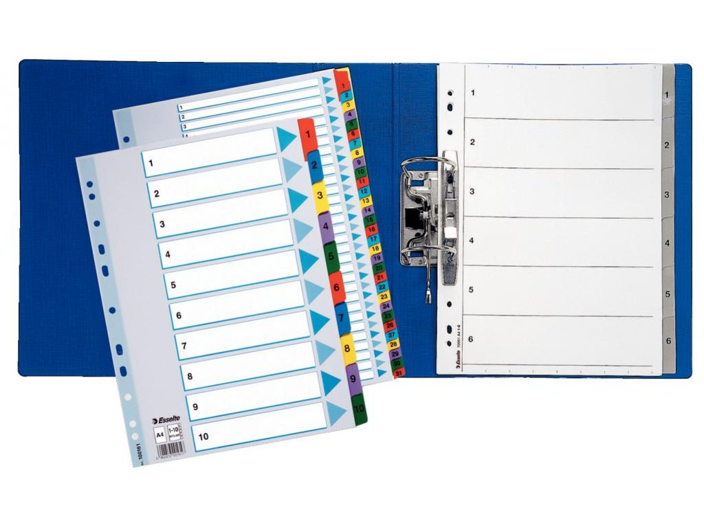 Rozraďovač vyrobený z kvalitného silného kartónu. Formát A4, vystužené eurodierovanie, farebné plastové rozlišovacie okraje, popisovateľný titulný list s farebnou potlačou na jasnú identifikáciu obsahu. Balenie jedna sada v polyesterovom sáčku. Väčšie balenie 10 sád.