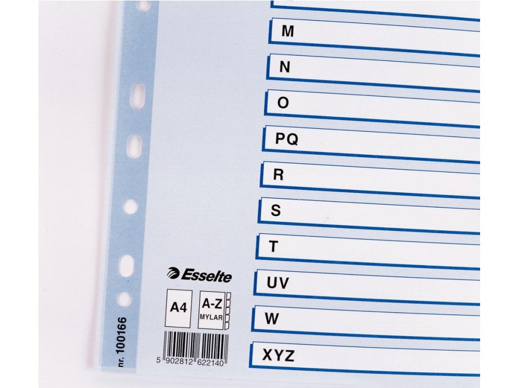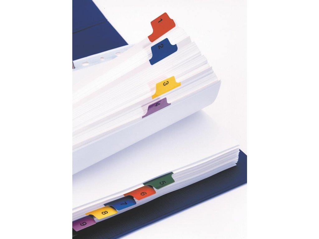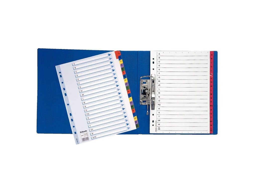 Rozraďovač vyrobený z kvalitného silného kartónu. Formát A4, vystužené eurodierovanie, farebné plastové rozlišovacie okraje, popisovateľný titulný list s farebnou potlačou na jasnú identifikáciu obsahu. Balenie jedna sada v polyesterovom sáčku. Väčšie balenie 10 sád.