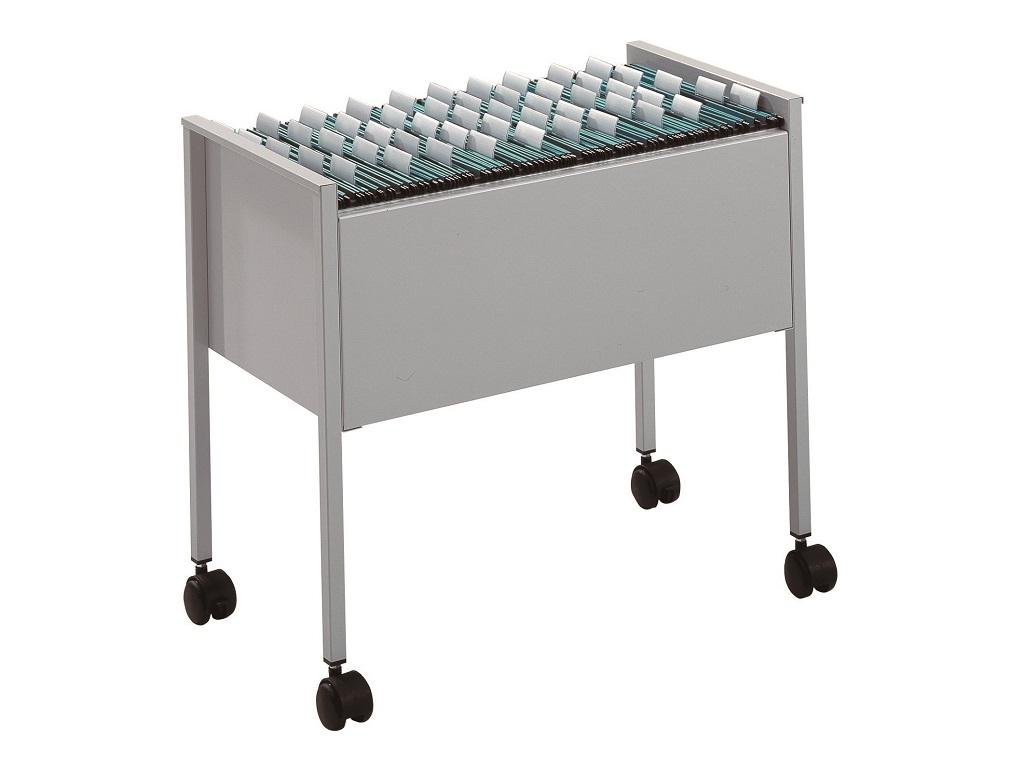 Robusná a ľahká jednoradová pojazdná kartotéka na závesné obaly. Kapacita 80 závesných obalov. Materiál oceľ s epoxidovým polyesterovým nástrekom odolným voči poškriabaniu. Dodávaná v rozloženom stave bez závesných obalov. Farba sivá.