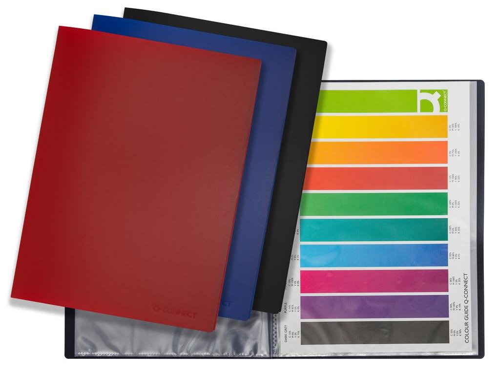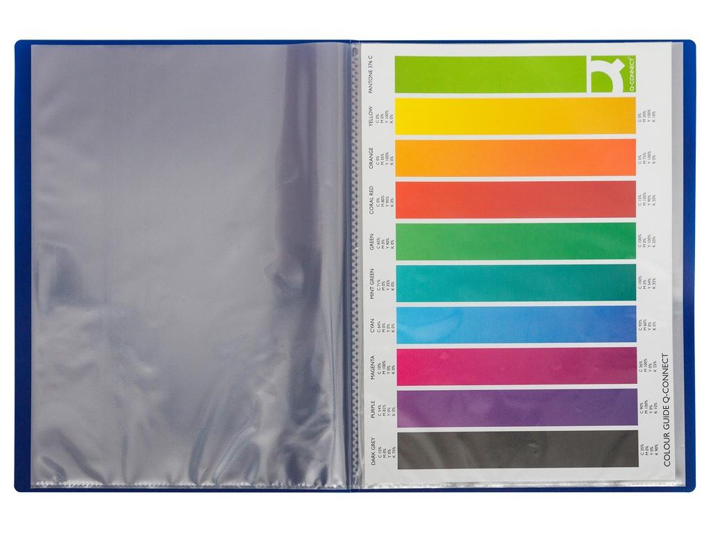 Katalógová kniha vyrobená z mäkšieho polypropylénu s predným priehľadným vreckom na vloženie titulnej strany. Počet obalov 10. Farba modrá.