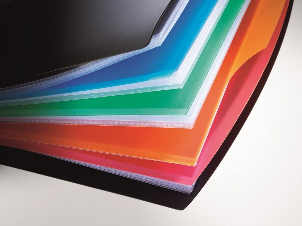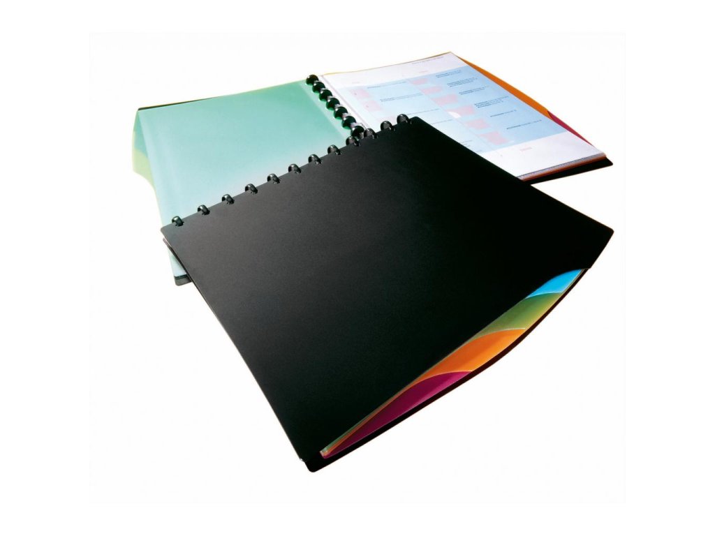 Štýlová katalógová kniha formátu A4 dodávaná s 20 obalmi a 4 farebnými rozraďovačmi. Rozšíriteľná náhradným balením obalov obj. kód DU2428 19 do maximálnej kapacity 35 obalov.