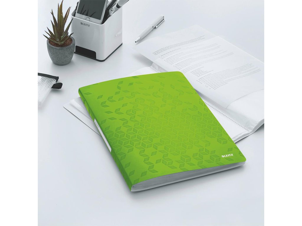 Katalógová kniha na prezentáciu dokumentov formátu A4, do ktorých sa často nahliada. Vyrobená z polypropylénu v dizajne WOW v žiarivých farbách. Vybavená 20 čírymi vreckami hrúbky 45 mic. a samolepiacou chrbtovou etiketou na popis. Väčšie balenie 10 ks. Kapacita 40 listov. Rozmery (š × v × h) 231 × 310 × 13 mm. Farba metalická zelená.