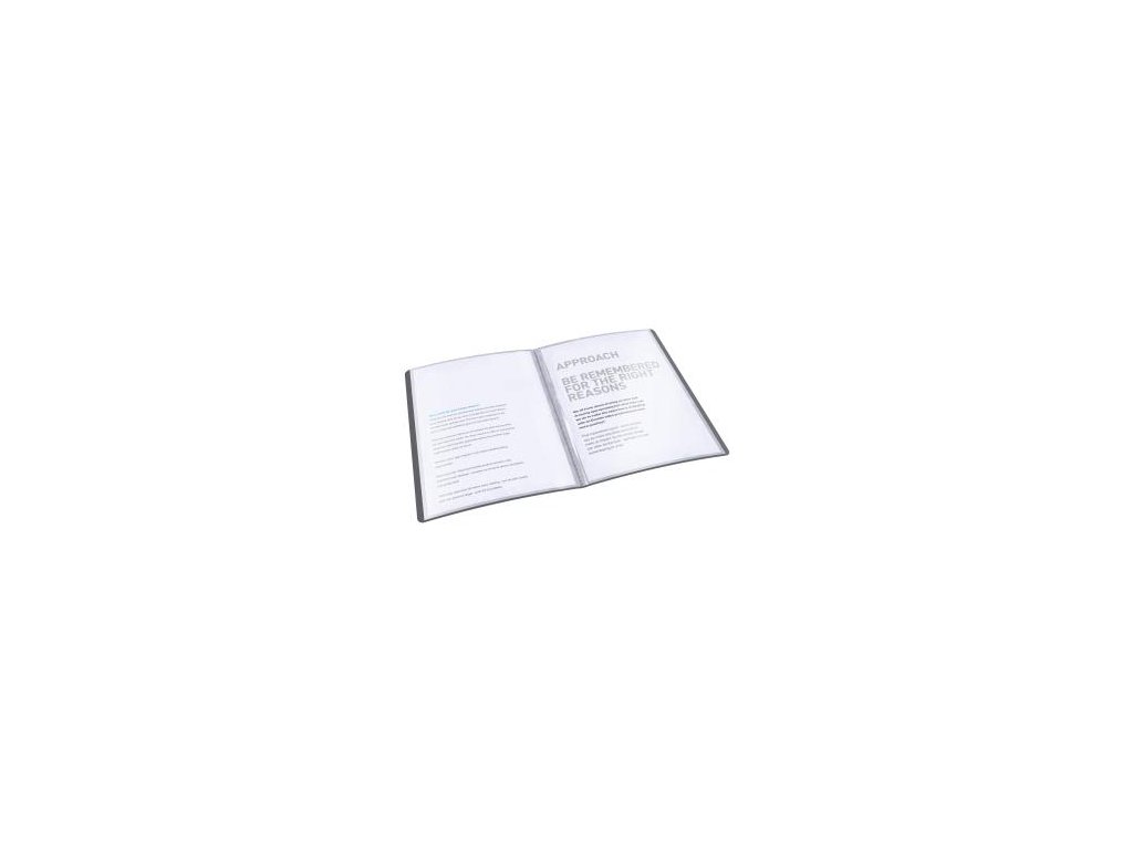 Mäkká katalógová kniha vo sviežich farbách a štvorčekovanom designe Vivida. Vyrobená z priehľadného polypropylénu hrúbky 0,36 mm. Ideálna pre prezentáciu či uloženie dokumentov, ktoré sú vystavené častému prezeraniu. 40 integrovaných obalov pre prezentáciu dokumentov. Zaujímavý povrch s embosovaným vzorom príjemným na dotyk. Samolepiaci chrbtový štítok v designe radu VIVIDA. Kapacita: 80 listov formátu A4 (80 g/m2), 2 listy / 1 obal. Farba čierna.
