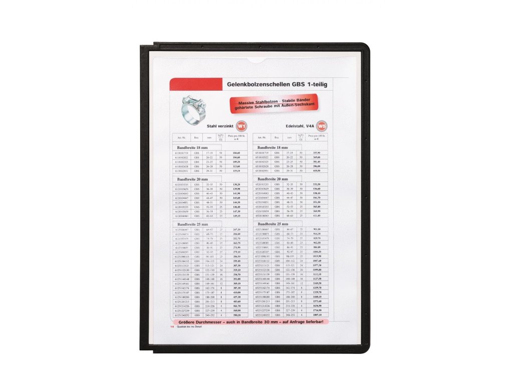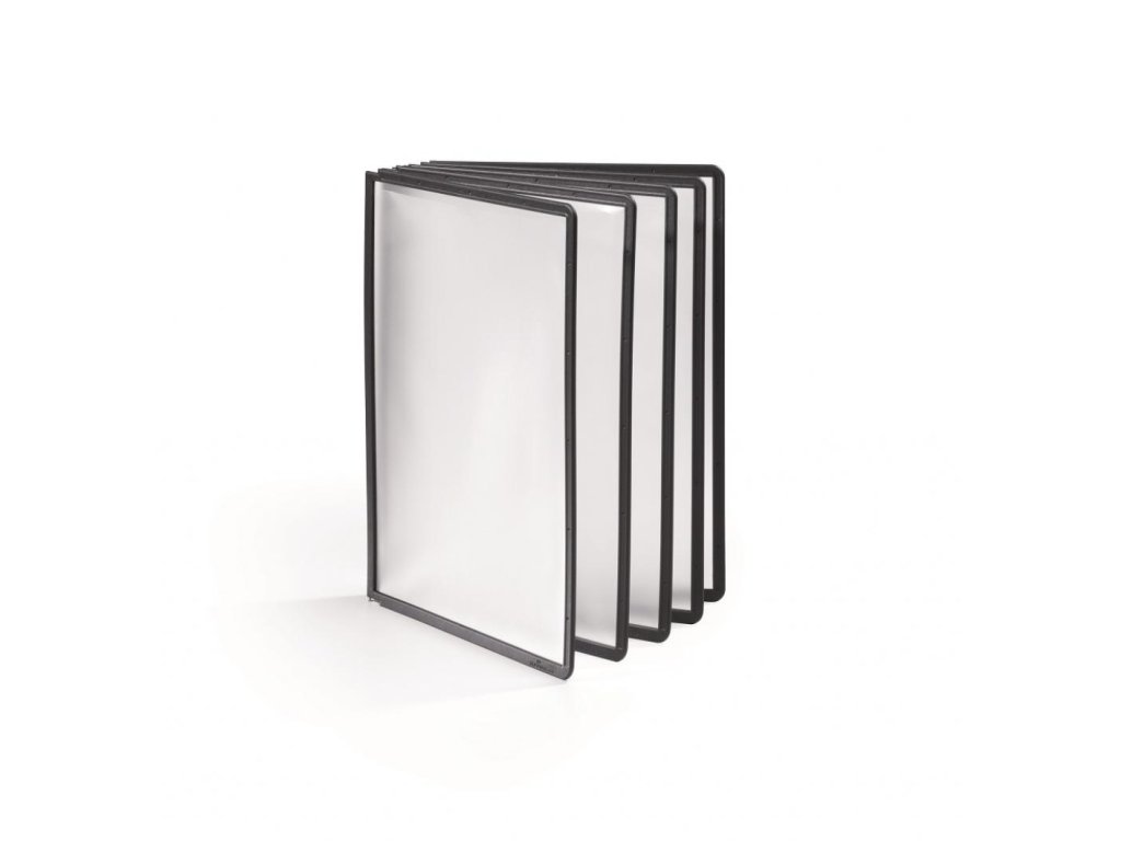 Displejový panel vyrobený z matného antireflexného polypropylénu pre systém Sherpa, kovové držiaky a rotačný stojan. Vložený materiál je kopírovateľný a skenovateľný. Pevný farebný rám s pozíciami pre indexy. Formát A4. Balenie 5 ks.