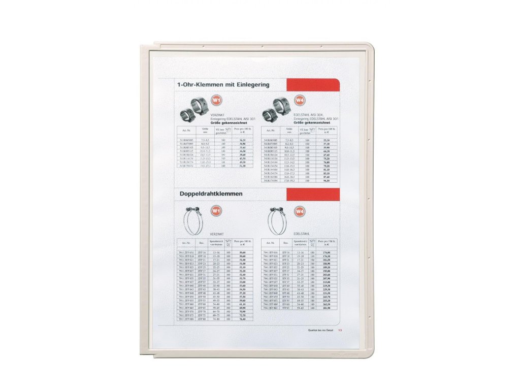 Displejový panel vyrobený z matného antireflexného polypropylénu pre systém Sherpa, kovové držiaky a rotačný stojan. Vložený materiál je kopírovateľný a skenovateľný. Pevný farebný rám s pozíciami pre indexy. Formát A4. Balenie 5 ks.