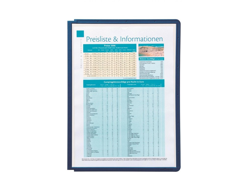 Displejový panel vyrobený z matného antireflexného polypropylénu pre systém Sherpa, kovové držiaky a rotačný stojan. Vložený materiál je kopírovateľný a skenovateľný. Pevný farebný rám s pozíciami pre indexy. Formát A4. Balenie 5 ks.