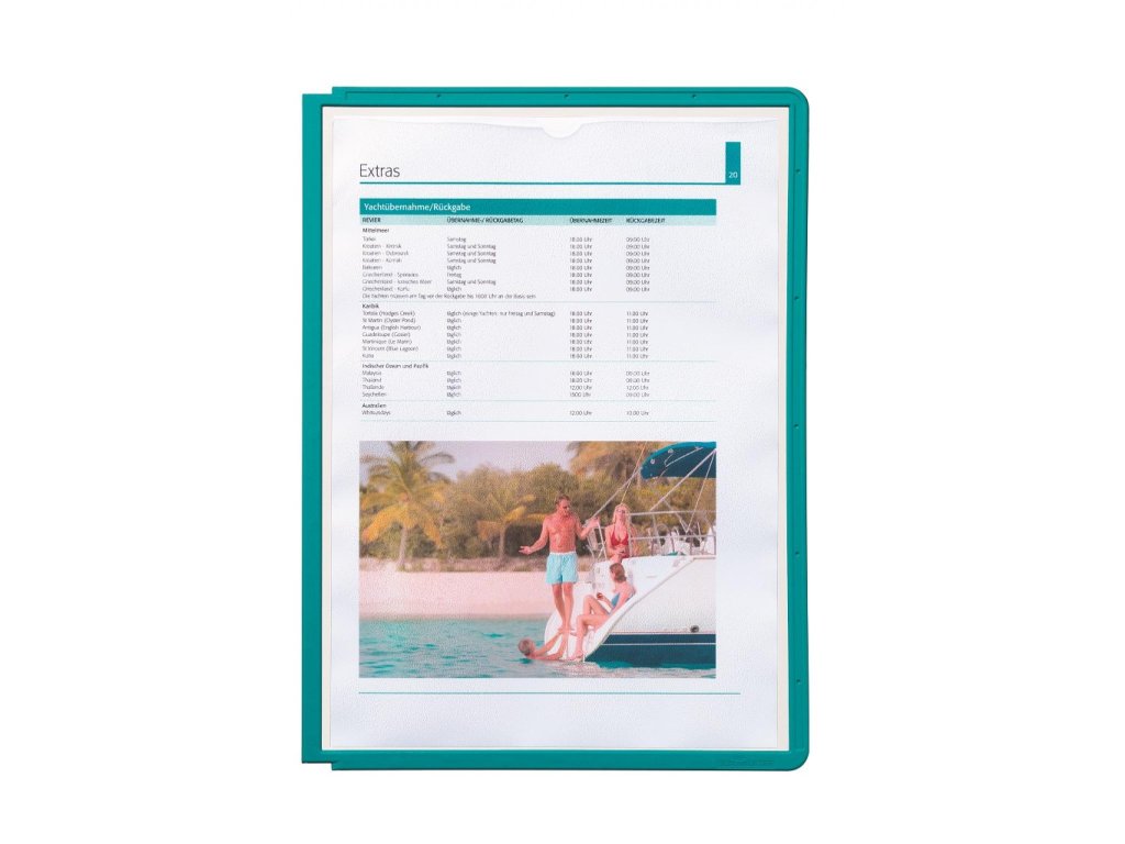 Displejový panel vyrobený z matného antireflexného polypropylénu pre systém Sherpa, kovové držiaky a rotačný stojan. Vložený materiál je kopírovateľný a skenovateľný. Pevný farebný rám s pozíciami pre indexy. Formát A4. Balenie 5 ks.