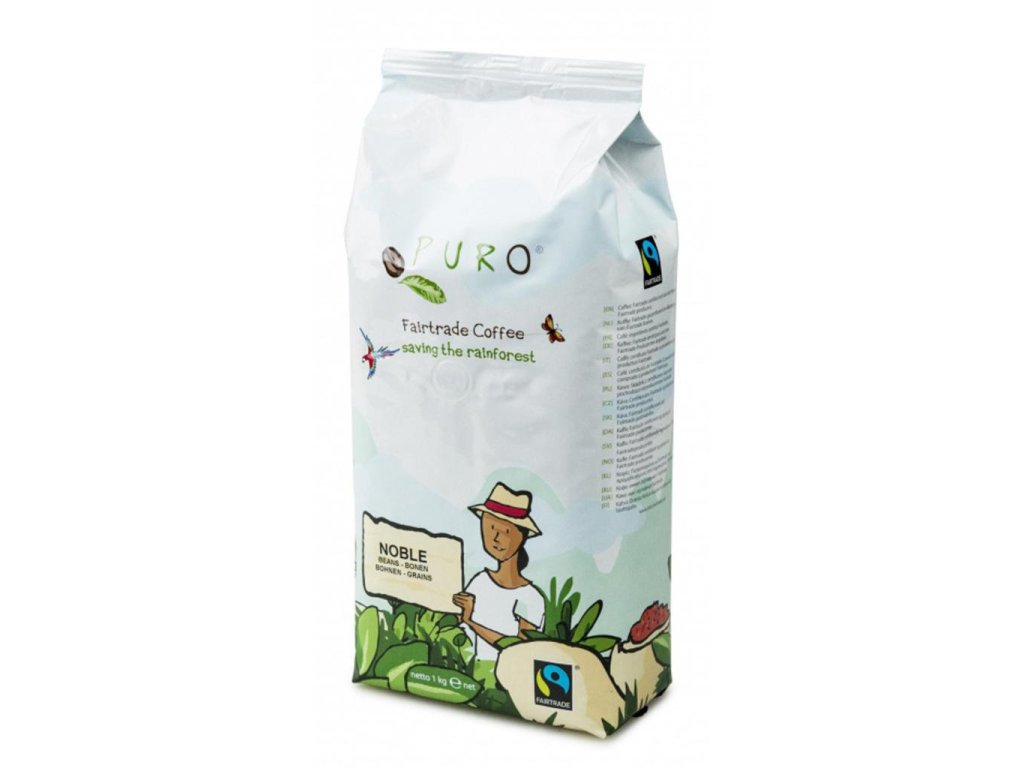 Výrobou dobrej kávy ekologickou cestou vzdávame úctu k prírode. Káva sa praží pri využití bezplatnej slnečnej energie, zemi sa vracajú všetky organické odpady pôvodom z kávy a baliaci materiál sa ďalej recykluje - to všetko je PURO Fairtrade. Hmotnosť 1 kg. Zloženie: 80% Arabica + 20% Robusta. Krajina pôvodu: Kolumbia, Guatemala, Peru, Uganda. Profil chute: plnosť 4/5, praženie 5/5, aróma 5/5, kyslosť 2/5.