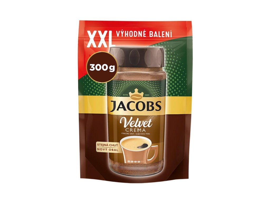 Rozpustná káva Jacobs Velvet Gold Crema prináša unikátne spojenie výraznej chuti a bohatej zamatovej peny.