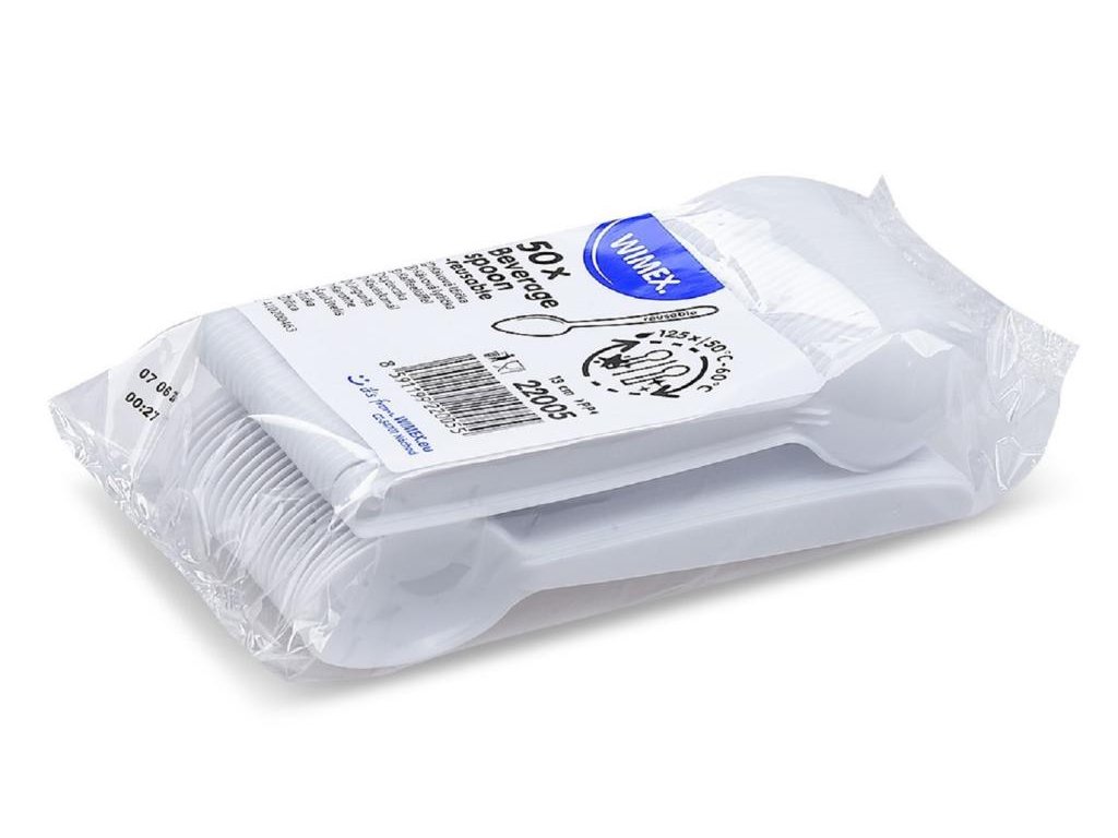Kávove lyžičky plastové znovu použiteľné biele 13 cm (50 ks)