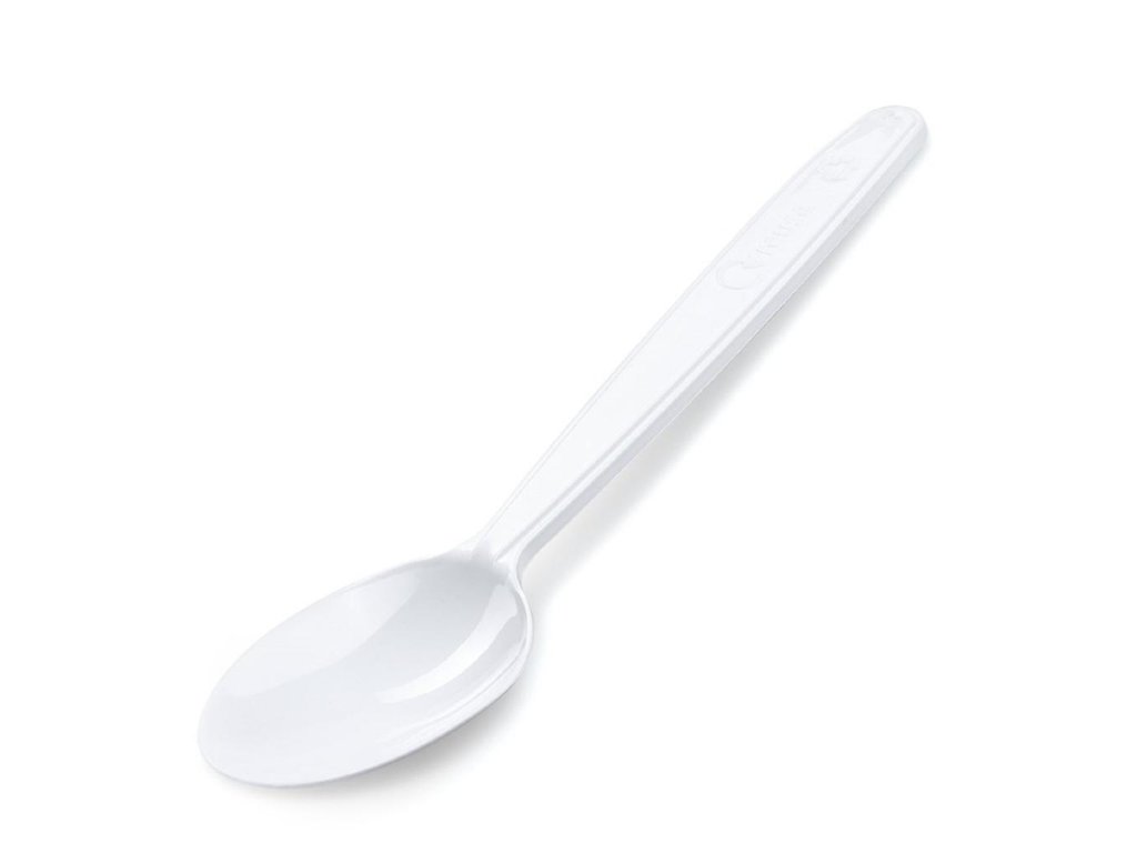 Znovu použiteľná lyžička bielej farby, vyrobená z pevného PP materiálu. Je skvelá pre všetky gastro prevádzky, ktoré robia donášku svojich chutných jedál.