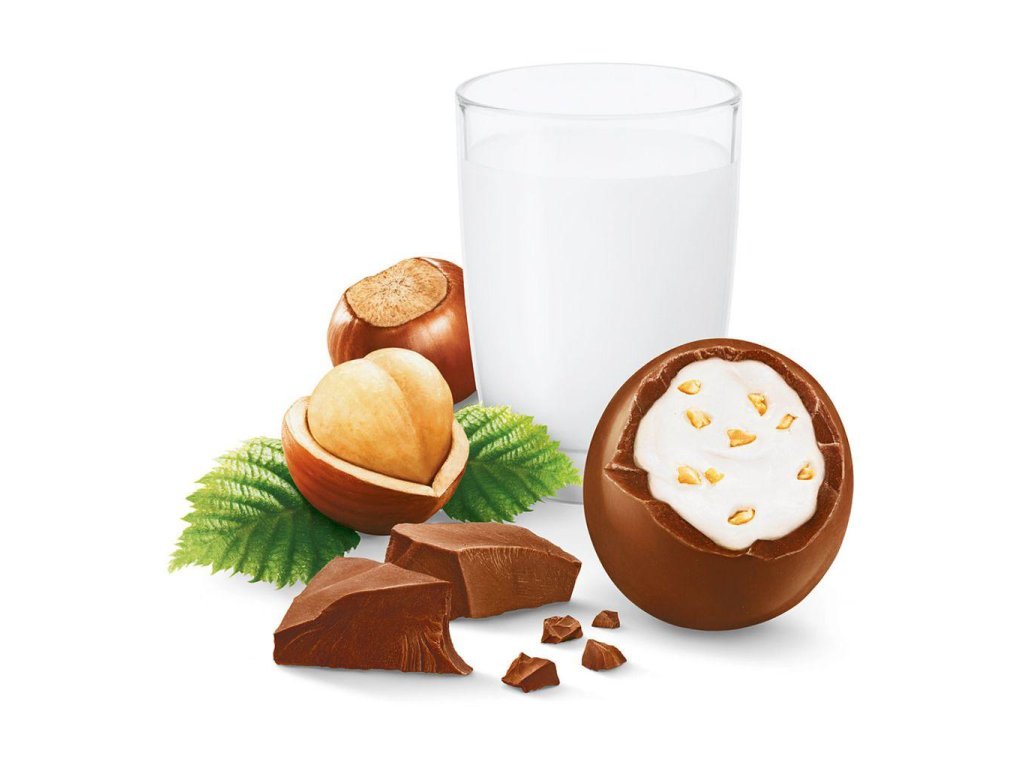 Mliečna čokoláda 50% (cukor, sušené plnotučné mlieko, kakaové maslo, kakaová hmota, emulgátor: lecitíny (sójové), aróma), Cukor, Sušené odtučnené mlieko, Palmový olej, Lieskovce (5,8 %), Maslový tuk, Čokoláda (cukor, kakaová hmota, kakaové maslo, emulgátor: lecitíny (sójové), aróma), Leštiace látky: (arabská guma, šelak), Glukózový sirup, Emulgátor: lecitíny (sójové), Arómy, Obsah mliečnej sušiny: najmenej 28 % z celkovej hmotnosti, Obsah kakaových zložiek: najmenej 16 % z celkovej hmotnosti.