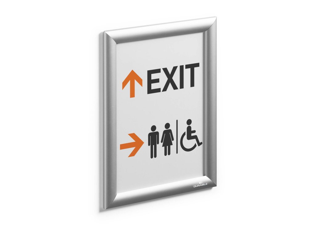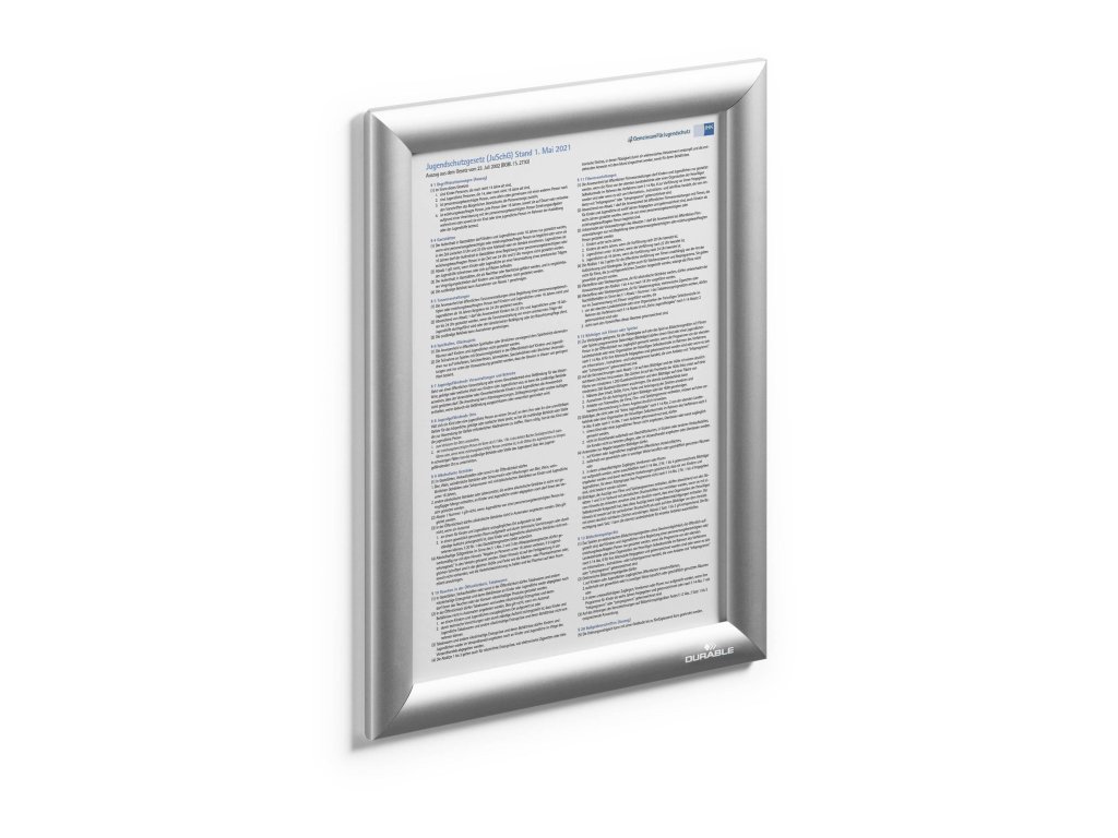 Robustný rám vo veľkosti A4 pre rýchle menenie dokumentov/motívu vďaka zaklapávaciemu systému. Odolný voči UV žiareniu vďaka nízkoreflexnej ochrannej fólii.