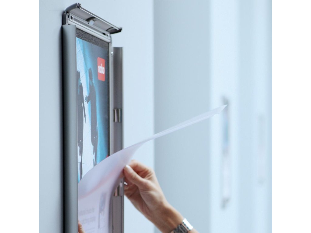 Rám na zobrazovanie informácií, plagátov alebo propagačných ponúk do interiéru aj exteriéru. Mechanizmus otvárania na klip, antireflexná fólia z PVC na ochranu pred špinou a prachom, vkusný hliníkový rám s tmavosivými rohovými spojkami. Formát A3. Rozmery v × š × h : 335 × 458 × 17 mm. Dodávaný s montážnou sadou.