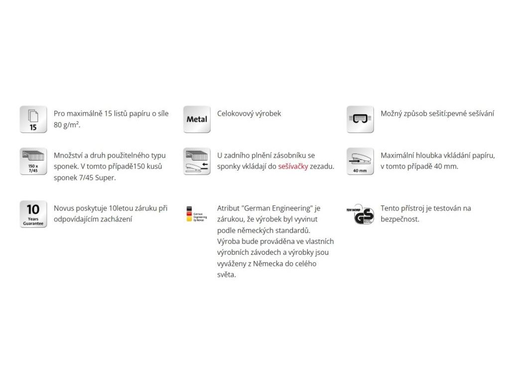 Pištoľ s čiernym plastovým telom a chrómovou úpravou. Záruka 10 rokov. Kapacita náplne 150 spiniek 7/ 45.