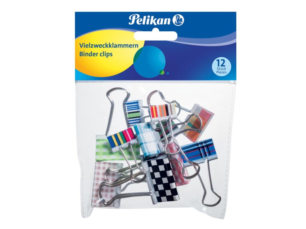 Klipy na dokumenty Pelikan farebné, 12 ks, mix farieb a veľkostí