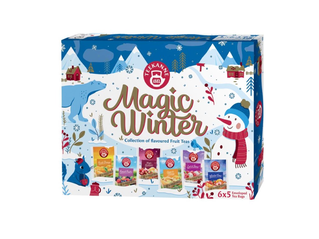 Hmotnosť: 68,75 g. V balení 6 x 5 nálevových vrecúšok: Fresh Orange 5 x 2,25 g, Ginger Lemon 5 x 1,75 g, Magic Apple - 5 x 2,25 g, Magic Moments 5 x 2,25 g, Sweet Cherry 5 x 2,5 g, Winter Time 5 x 2,5 g.