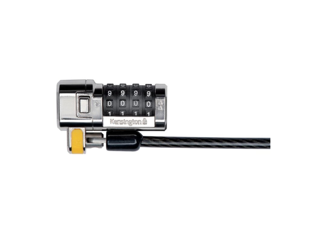 Na ochranu notebooku stačí bezpečnostnú kotvu zámku s 10 000 možnými kombinačnými kódmi zasunúť do slotu Kensington Security Slot™. K zaisteniu stačí jedna ruka a nie je nutné používať kľúč. Kábel z uhlíkovej ocele je odolný voči prerezaniu a môžete ho ukotviť k stolu, či inej pevnej konštrukcii.