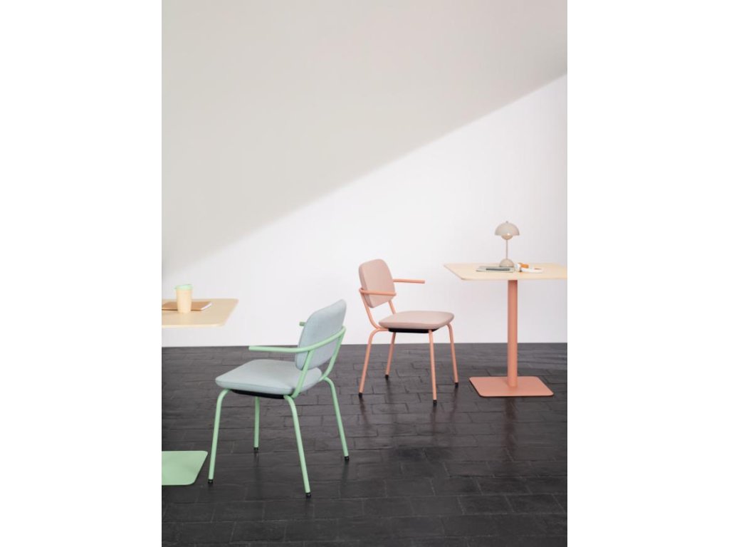 Normo je nová stolička pre prácu a rokovanie. Je všestranná a odolná, bola vytvorená v súlade s princípmi cirkulárnej ekonomiky.Recyklovateľný výrobok - na konci jeho životnosti je možné všetky súčiastky rozobrať, rozdeliť na suroviny a plne recyklovať. Je vyrobená s použitím recyklovaných materiálov, namiesto prírodných - z 100% recyklovaného polypropylenu.Stolička má kovovú kostru, model s krátkými podrúčkami je možné zavesiť na dosku stola. Je stohovateľná pre ľahké skladovanie a prepravu/ až 4 stoličky/.Stolička je vyrobená bez lepidel a sponiek.Uhlíková stopa pri jej výrobe je znížená na polovicu - len 28 kg CO2 . K dispozici je vo 12 konfiguráciach.