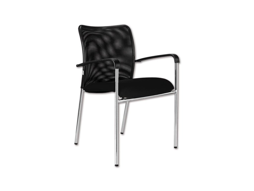 • Stohovateľná konferenčná stolička s látkovým sedákom a sieťkovým operadlom moderného dizajnu.